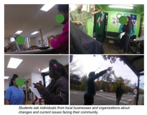raders were new to the school (our program was held in the fall), and many were new to the area. The Historic Geocache gave them the opportunity to learn in authentic ways about the history and features in surrounding community. The group that met with the pastor learned about the church’s daily breakfasts for the homeless population in the community. After hearing about this, one student asked the pastor how she could volunteer. See what I mean by meaningful?